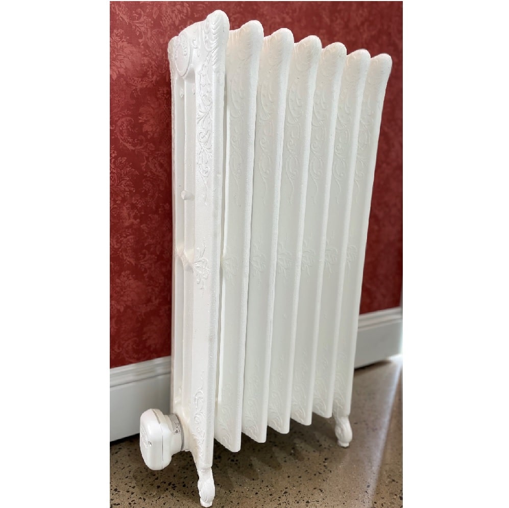 Radiateur entièrement restauré équipé d’une résistance électrique spécialement adaptée. Scellé en usine, rempli d’antigel et d’eau, ce radiateur n’a pas besoin d’entretien. Boîte de connexion en fonte assortie pour connexion filaire sur 240 Volts. Contrôlé par le thermostat de votre choix, vous pouvez profiter de la chaleur de la chaleur radiante sans avoir à faire fonctionner un système central complet. Une solution agile, écologique, confortable et sans tracas pour le style de vie d’aujourd’hui.